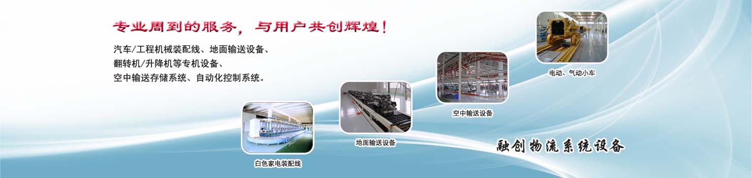 無錫市融創(chuàng)物流系統(tǒng)設(shè)備有限公司專業(yè)從事物流輸送設(shè)備、各類裝配流水線設(shè)備、各類生產(chǎn)非標(biāo)專機(jī)設(shè)備和自動化控制系統(tǒng)的專業(yè)生產(chǎn)企業(yè)。廣泛應(yīng)用于轎車、卡車、客車、各類工程機(jī)械、發(fā)動機(jī)、車橋、農(nóng)業(yè)機(jī)械、郵政、家電等行業(yè) ...... >> more >>